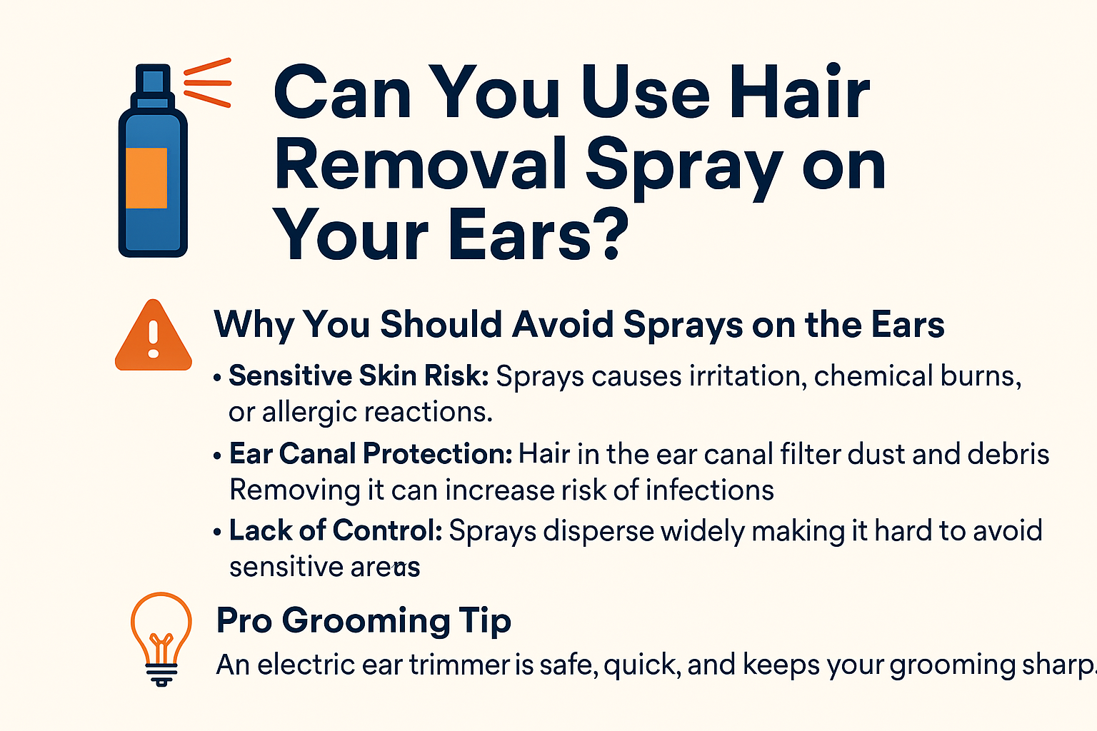 Hair removal sprays contain strong chemicals designed to break down hair proteins. While effective, they’re not safe for use near or inside the ear canal. Here’s why: